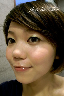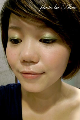 將森之麟的偏光綠色 沾染在食指後 點壓在上眼皮眼球突出處