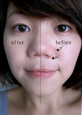 下巴的痘疤好像都被我蓋過去了~不過可以看出右邊鼻翼下都是泛紅的痕跡