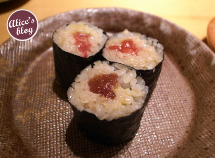 鮪魚肚握:師傅的捏工將醋飯與魚片完全融合,簡單的一片魚片竟然可以感受到豐富的層次。