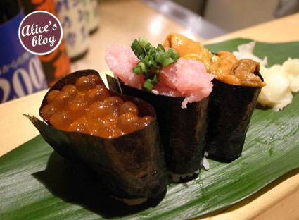 海膽、魚卵、蔥鮪泥軍艦:我的軍艦,樣樣都一流,小胖不吃海苔,