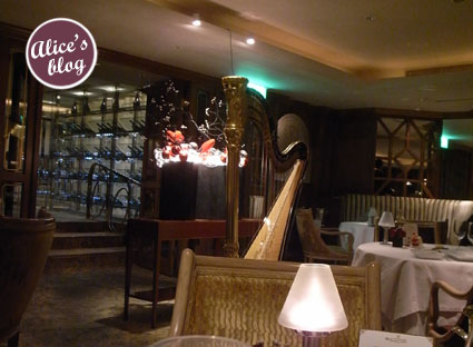 還是同一台超漂亮的豎琴,以及高雅的用餐環境,而且多了些應景的聖誕布置。