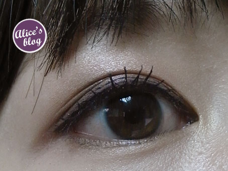 (這天是以粉膚色刷在上眼窩當作中間色 再用深咖啡色畫眼線