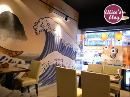 彤料理的店面是跟昇壽司分租的,空間不大但布置得很簡單、寬敞,牆壁上的畫作也很有特色,