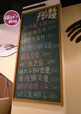 手寫菜單挺可愛的,與昇壽司走不同路線,以丼飯、蓋飯、串燒為主。