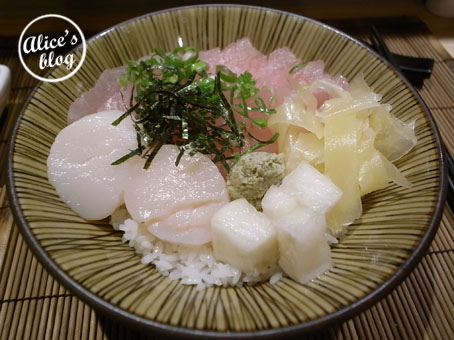旗魚干貝丼:旗魚品質很好,干貝頗大,可惜冷凍貨較不甜,及不上旗魚,但以這價位來說仍然是非常值得歐!!
