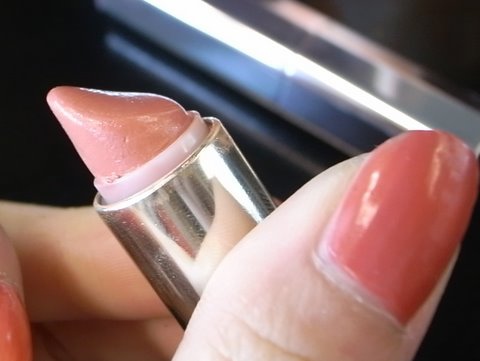 蜜糖珊瑚橘色加上帶有一點點黃色亮片感的唇膏