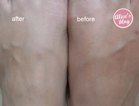 再來看看擦完以後的左邊腳背.............天啊!!! 這真的很明顯比較出嫩白的效果了~~!!