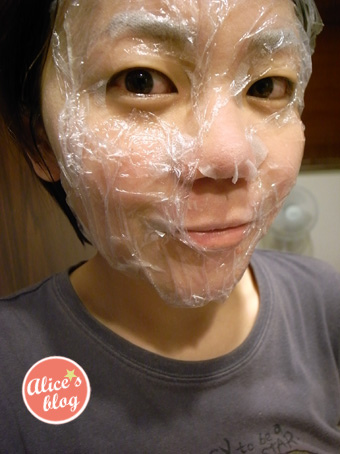 右圖:加上保鮮膜...我覺得公開這行為實在很蠢..畢竟敷起來好醜喔~~