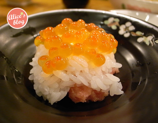 不愛添財的握壽司,但是迷你散壽司很好吃,鮭魚卵醃製的很合我的口味~~