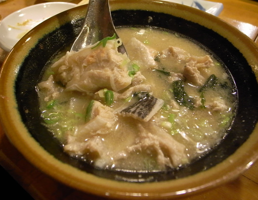豪華的一碗湯:裡面都是鮭魚肚以及魚肚附近的筋,料超多超好喝~~