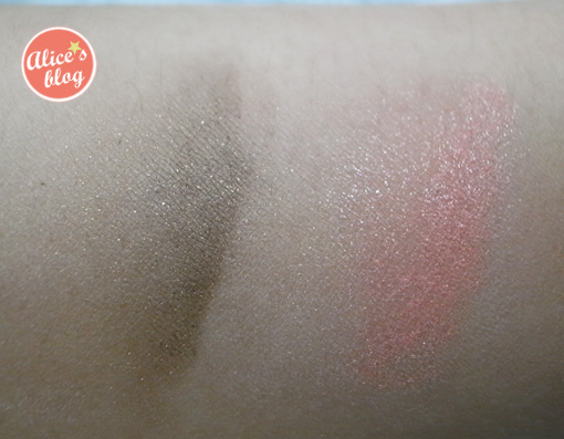 所以作為眼影的效果看起來 會帶有點珠光光澤~以及些許的亮片感