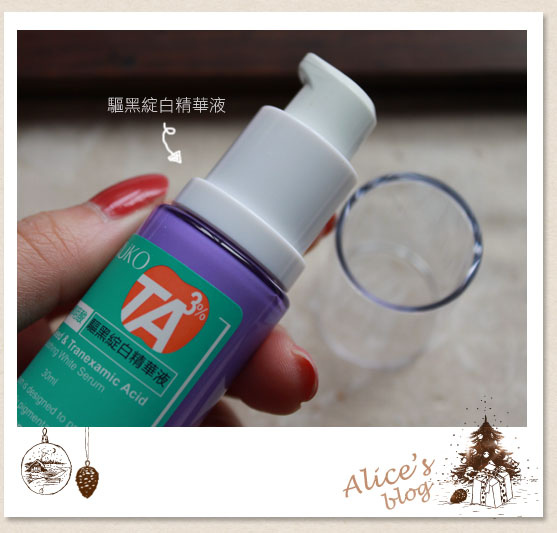 這瓶精華液呀~結合了最高濃度3%傳明酸、維他命C乙基和4MSK等有效淨白成分,