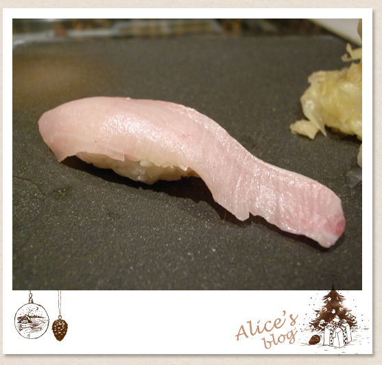 金目鯛肚握:加了點柚皮的金目鯛肚非常可口,壽司的大小剛好可以讓我一口解決~