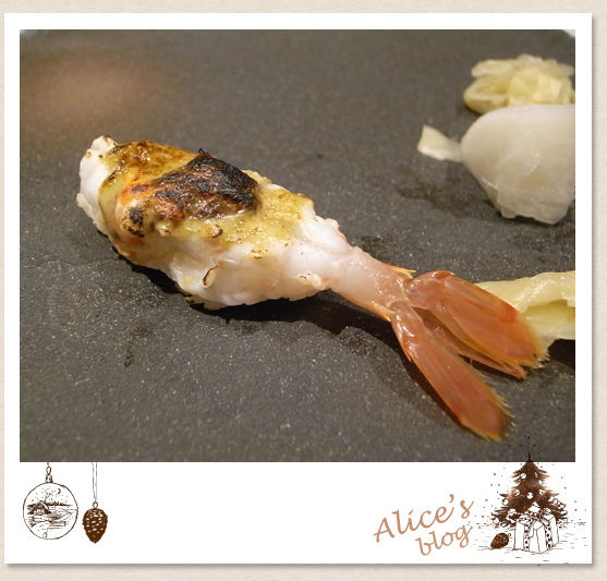 微炙牡丹蝦握:上面撲了蝦膏後微炙,超級超級香,沒想到牡丹蝦微炙後那麼好吃呢!!
