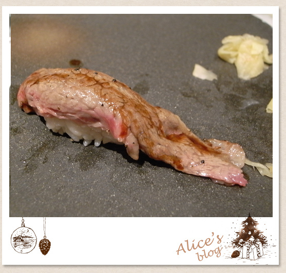 微炙牛肉握:孫師傅很坦白的說最近日本魚貨少,他只好拿牛肉來充充數,變各花樣,有吃誠實豆沙包,給個讚XD