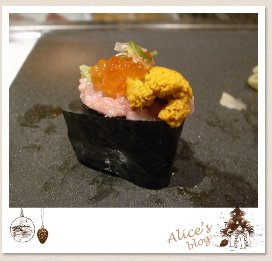 海膽是加拿大的,日本或已經沒了,鮪魚泥是現刮的中腹肉,好吃~