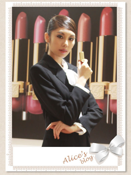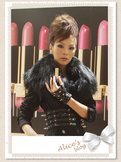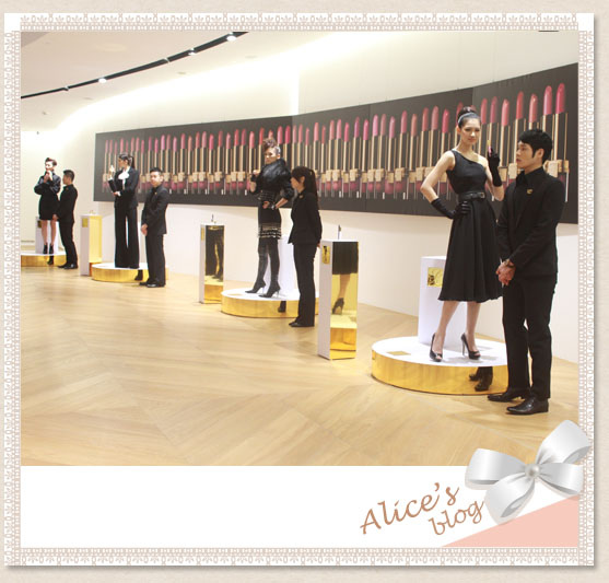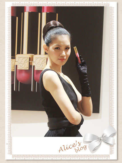 找了幾位模特兒站在台上~就像藝術品一樣,展示著新唇膏