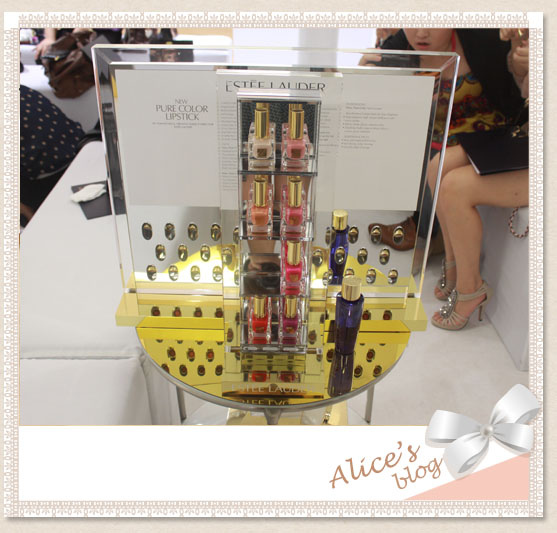 像是這天參加雅詩蘭黛的發表會,在架上擺著的純色晶灔唇膏新品就有35支新品耶!