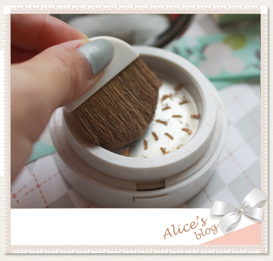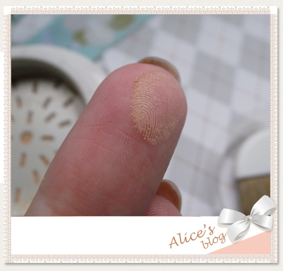 摸起來的感覺~其實比較接近粉底粉末的質地呢!帶有點濕潤感~