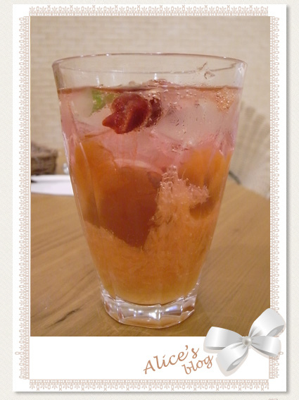 飲料中含有蜜桃果泥,讓冰茶的清爽滋味又多了口感可以品嚐~