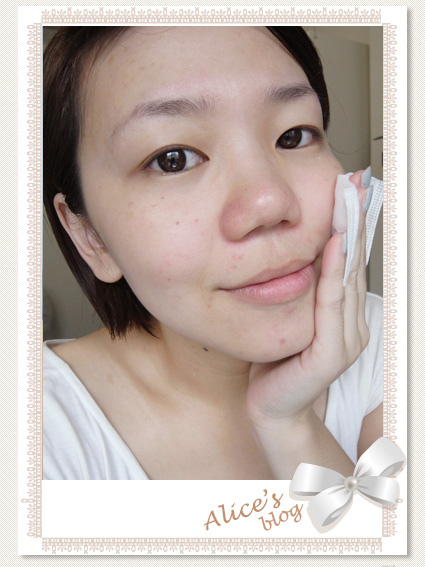 倒出滿滿的機能水浸潤化妝棉,以輕拍的方式讓肌膚吸收