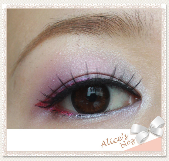 加上鮮豔桃紅色眼線液妝點一下!!