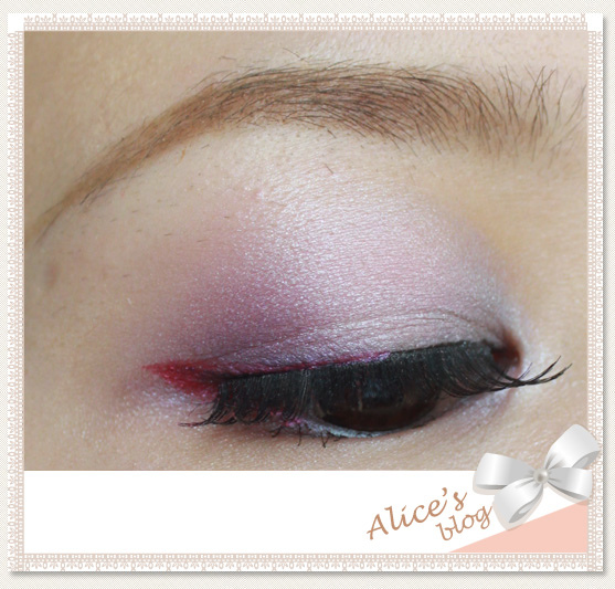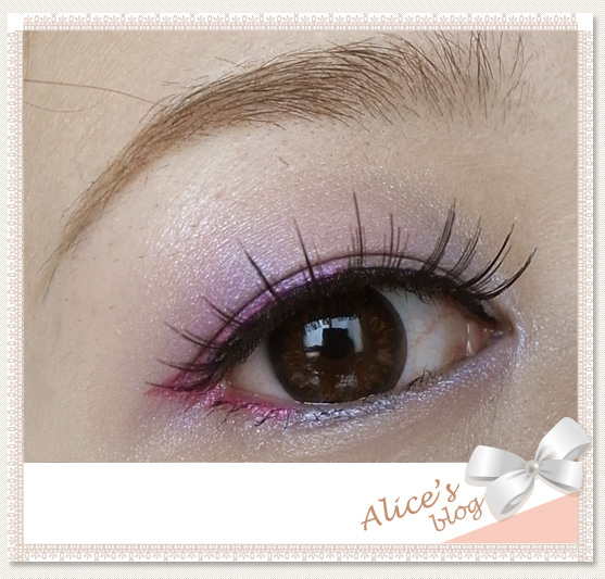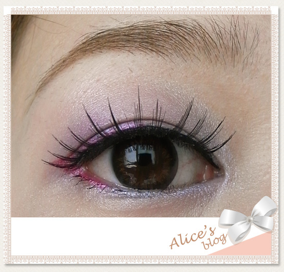 5. 桃紅色眼線畫在上眼皮後1/2位置,再與下眼線接和