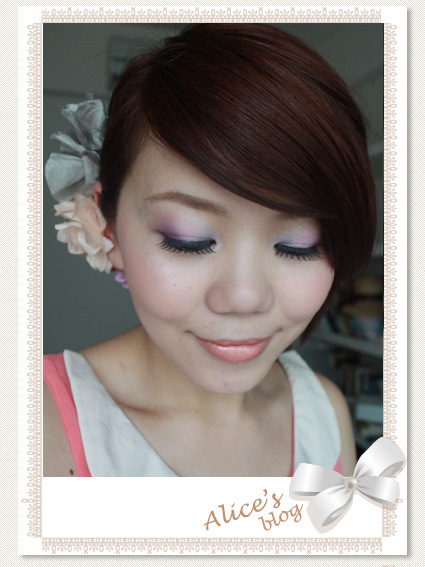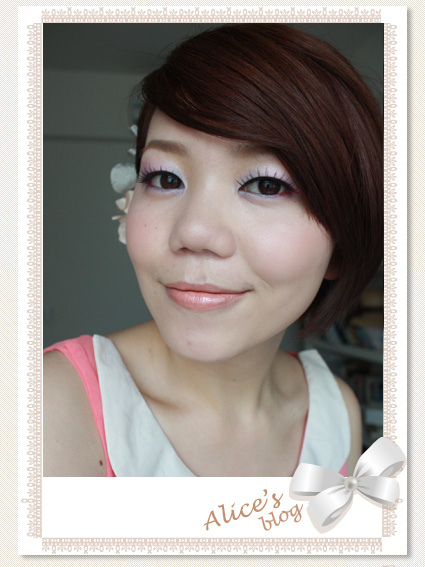 眼妝全都是粉粉紫紫,看起來沒什麼重點