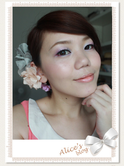 在髮際側邊加上三色花花飾品,配合眼妝的粉嫩色彩,超搭的呀!!!