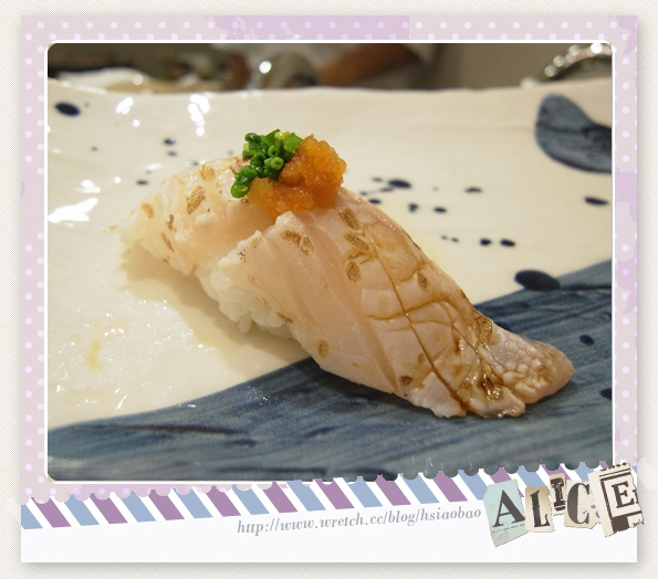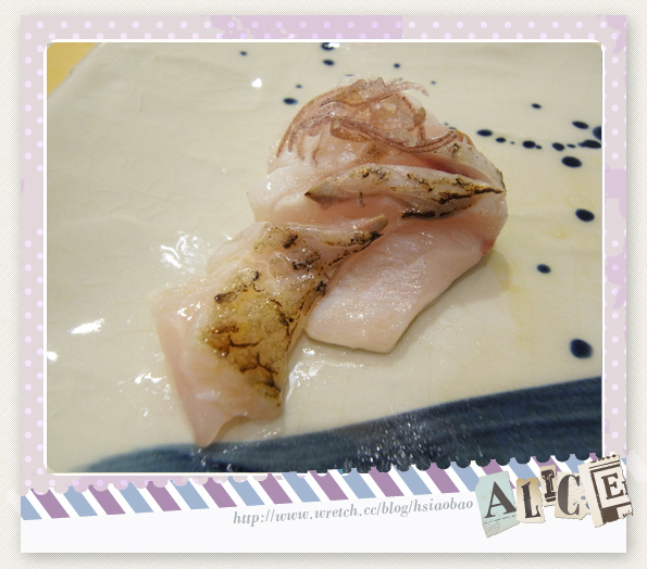 微炙真鯛刺身:不錯,但我更喜歡前一貫沒有微炙的真鯛~