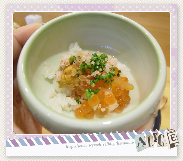 迷你丼:馬糞海膽以及鮭魚卵都讚,只可惜不是一大碗XD