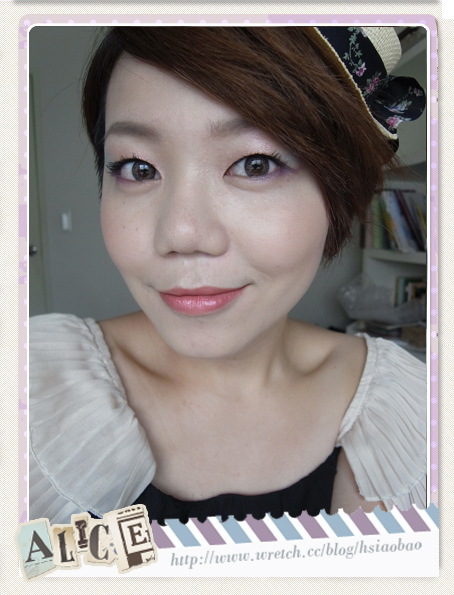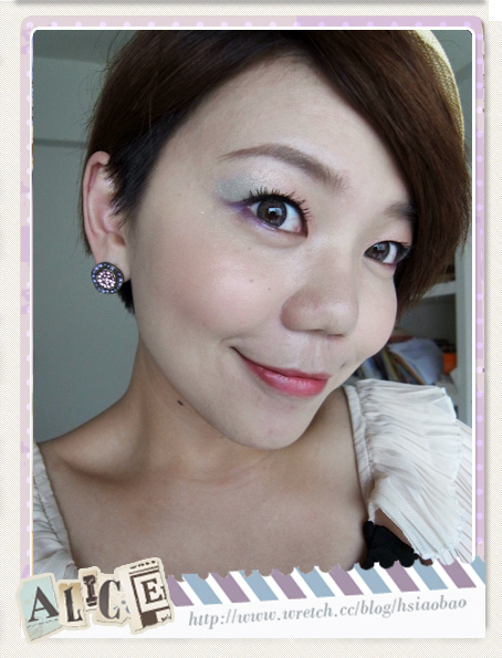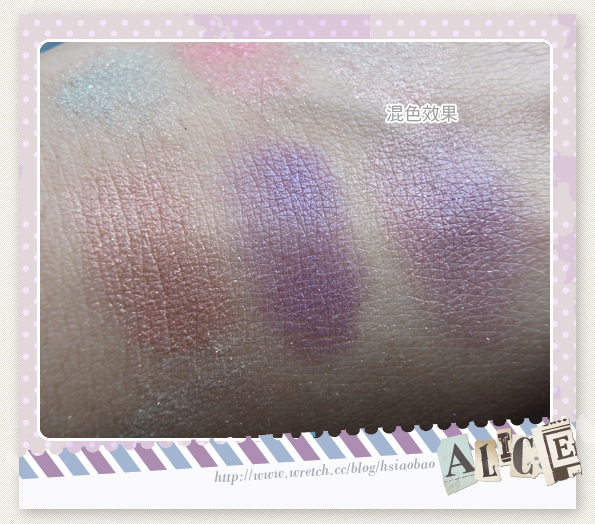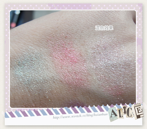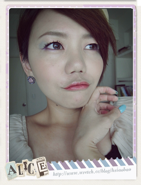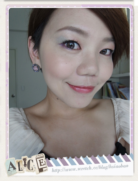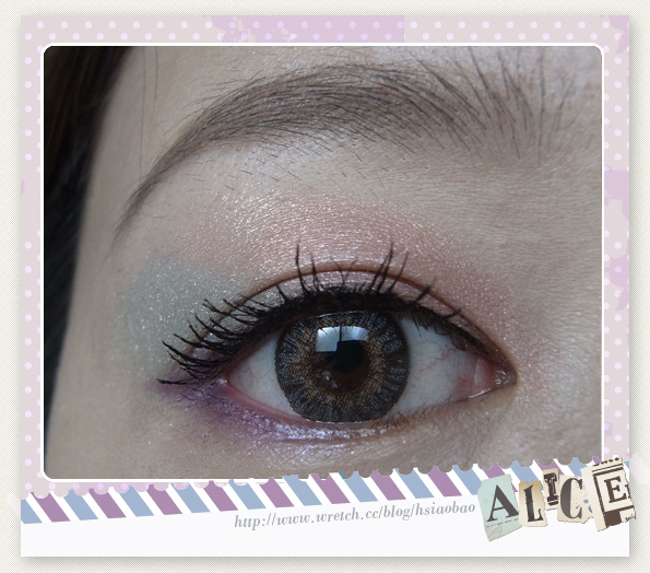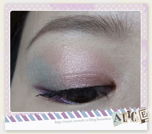 這次我的眼妝畫法以粉紅配上粉綠,再以紫色作點綴