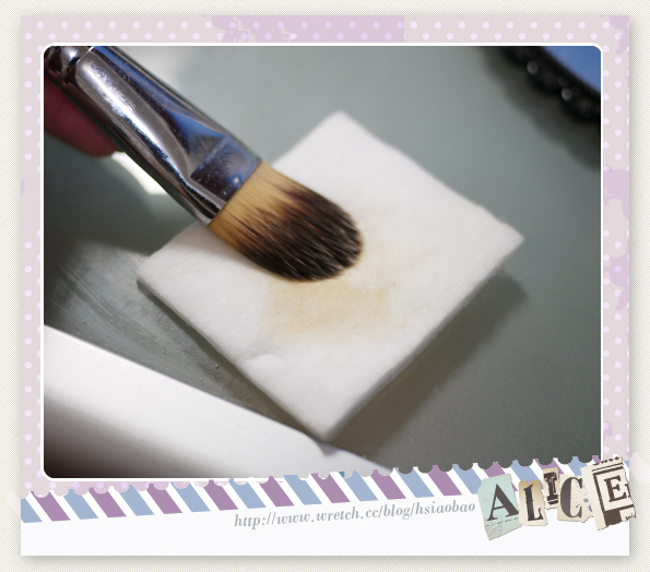 刷具上的殘留粉末就會附著在化妝棉上囉!