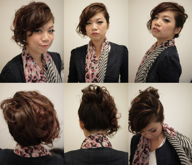 髮型往側邊旁分,再以電棒捲弄出線條感