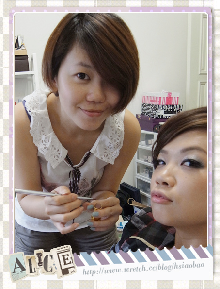開始幫他上玉米夾與電棒捲~接著又畫起全妝來~嘻