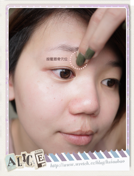 分別按壓了眼頭、眼週中間以及眼尾部分
