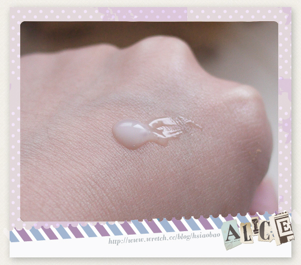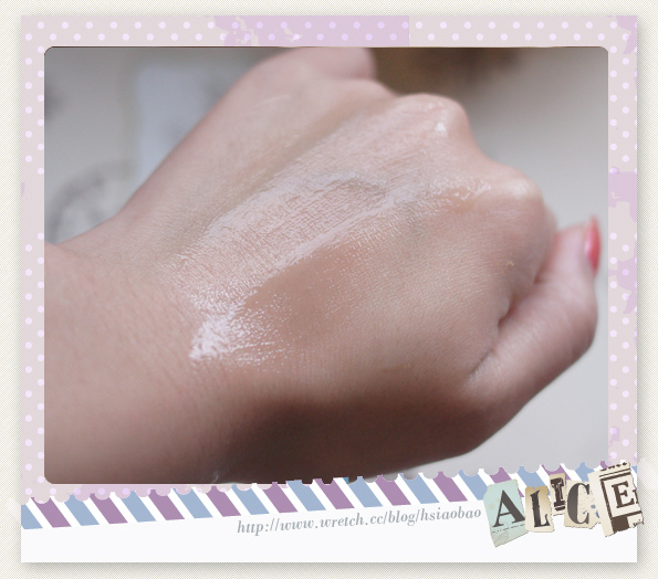 跟肌膚接觸後,原本凝露狀的保濕精華變成了水狀~