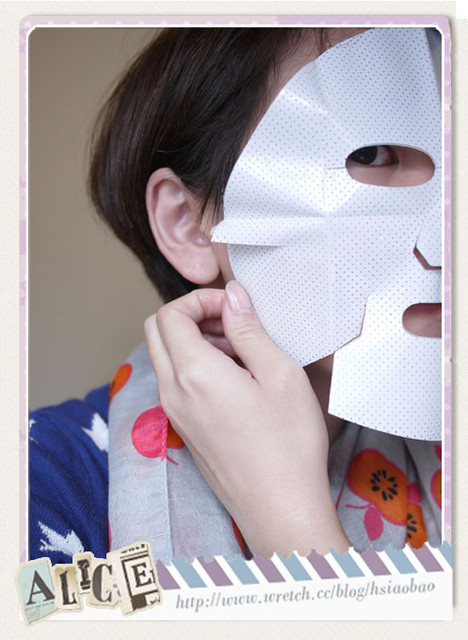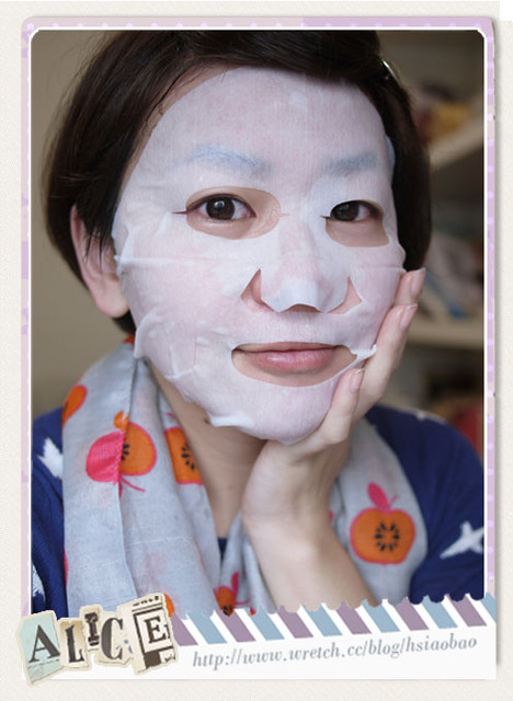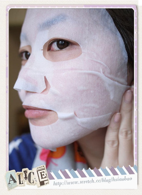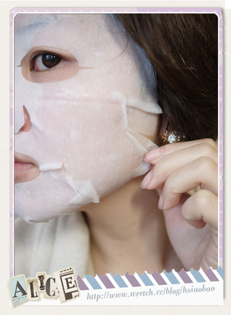 剛拿下來還能見到面膜覆蓋在臉上而殘留的精華液