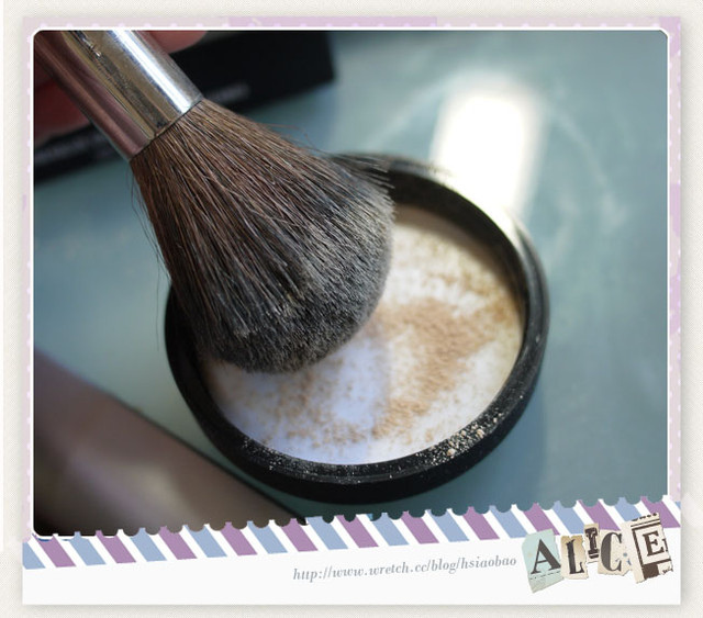 先彈彈蜜粉刷將多餘的粉末彈掉