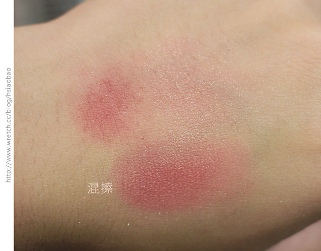 等到混色之後,珠光的水潤色澤與霧面顯色的玫瑰粉紅
