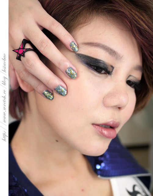 把眼妝分成兩個部分,連同指彩一塊兒演出表述