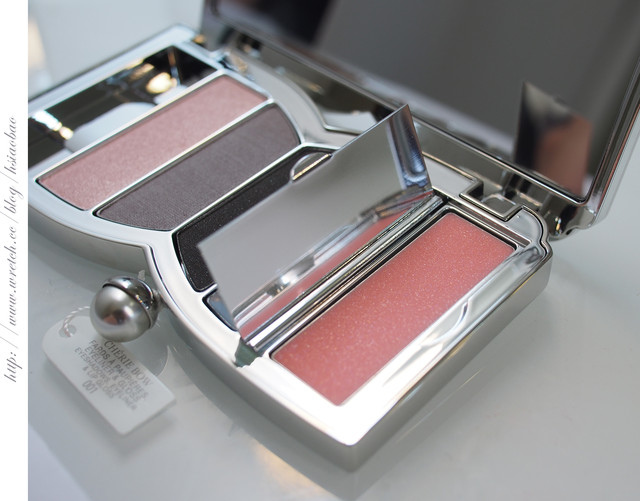 在蝴蝶結彩盤中包含了眼影、眼線霜與唇蜜的組合