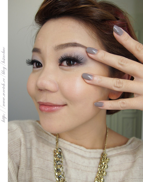 再擦上一層亮甲油,原本的灰色調會轉變為稍微帶了點紫藕的灰色