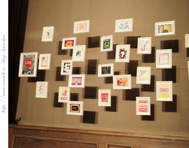 在發表會場側邊的牆面上掛著YSL先生每年以愛為主題所創作的明信片