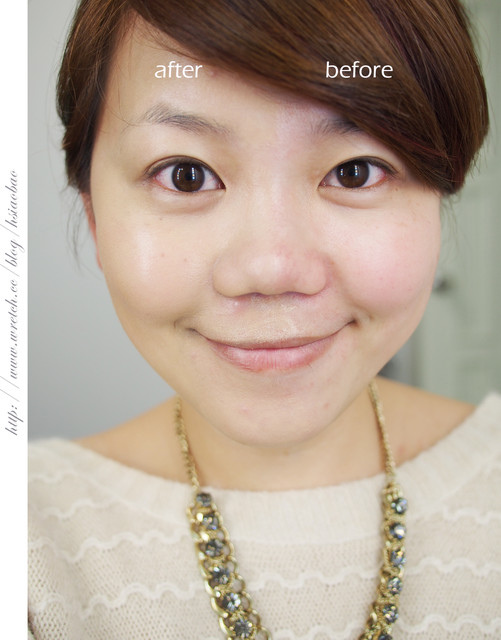 擦上粉底液後蘋果肌多了光澤