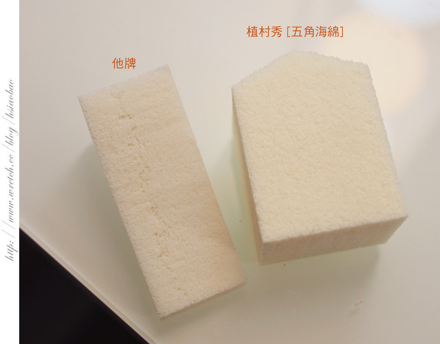 跟其他牌子的海綿一比較就知道植村秀五角海綿有多紮實呢~