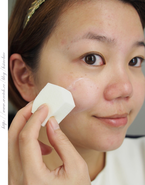 再來就利用五角海綿幫助我擦上UV泡沫隔離霜-毛孔隱形配方款囉!