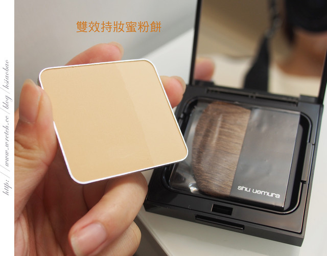 再用雙效持妝蜜粉餅做好定妝動作