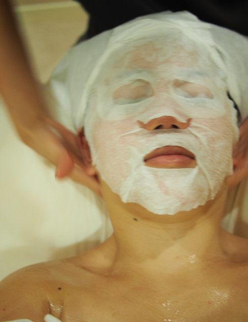 把醒膚水作為保濕精華 浸濕面膜紙後敷在臉上