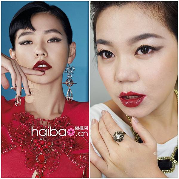 真的超愛粗眉、紅唇的妝容,再搭配中國風飾品與服飾